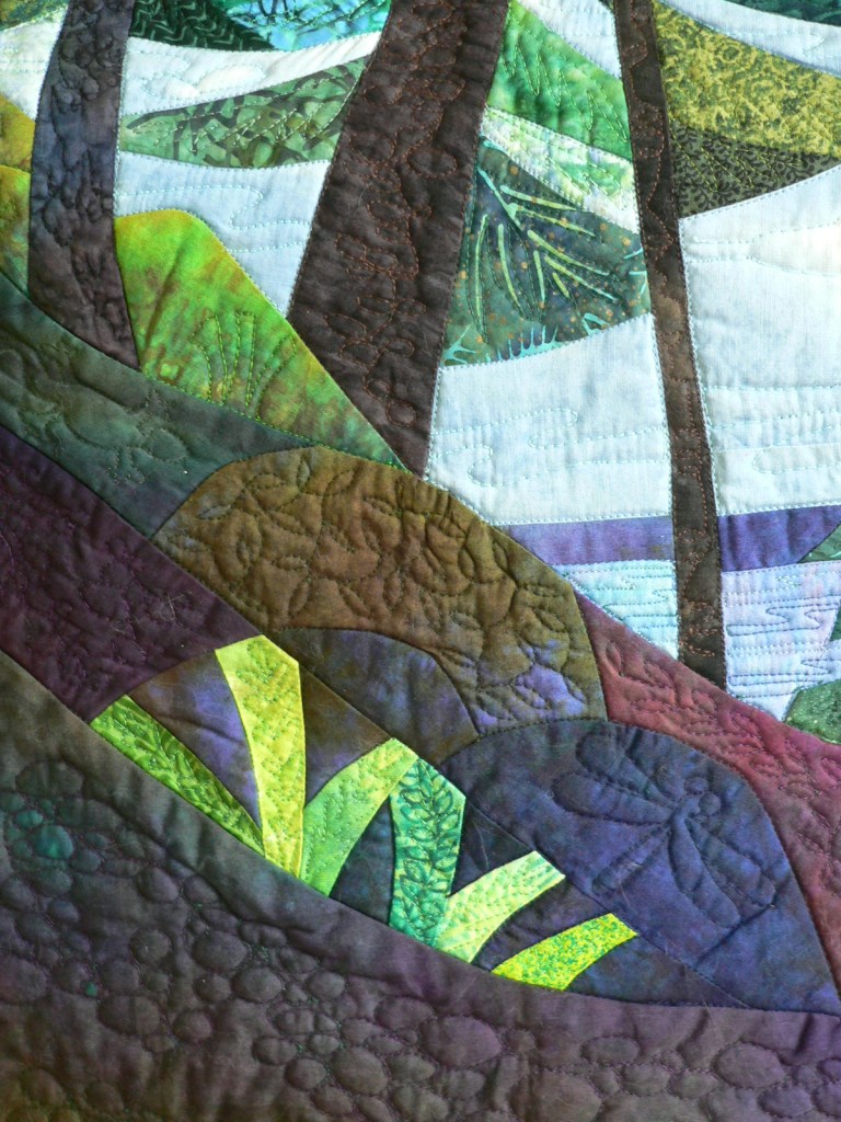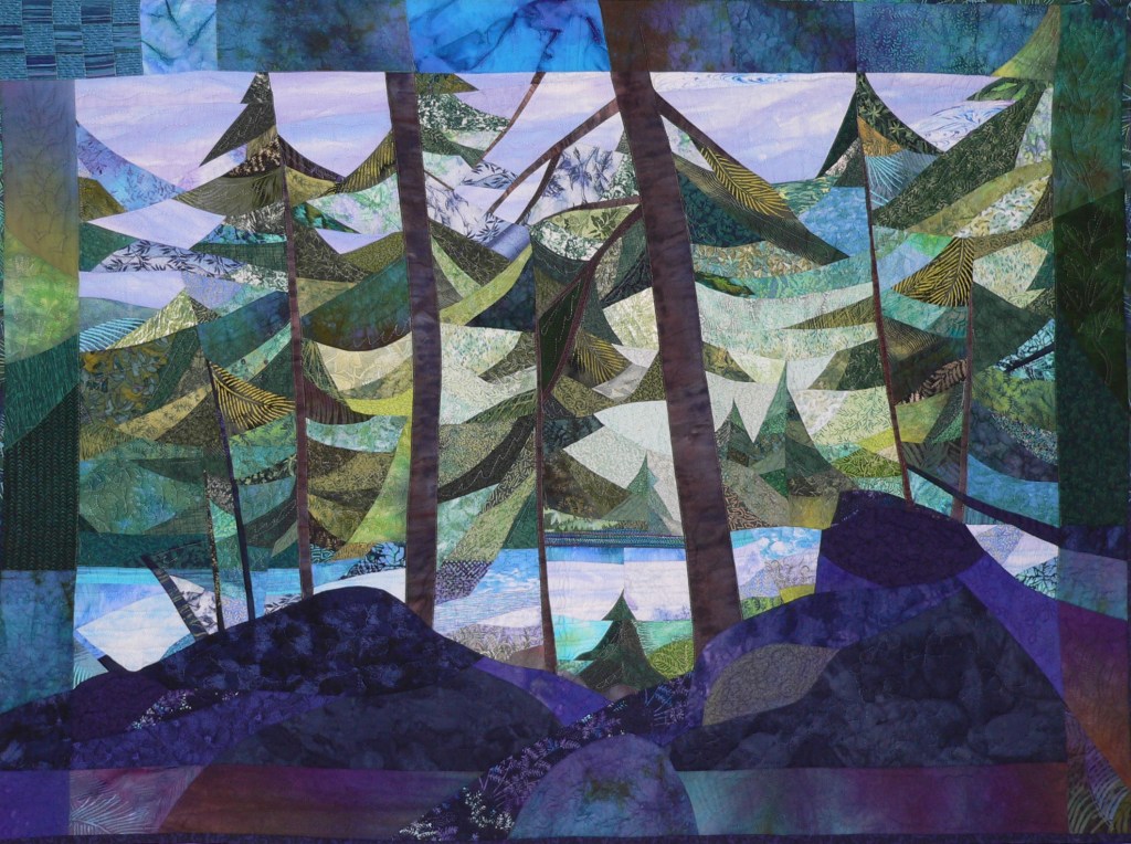 Spending many summers in the Adirondack Mountains provided endless inspiration for Elsie’s art. Nature abounds with fascinating shapes and patterns. The interplay of light and shadow captivates and challenges her to interpret them into visual fabric compositions.